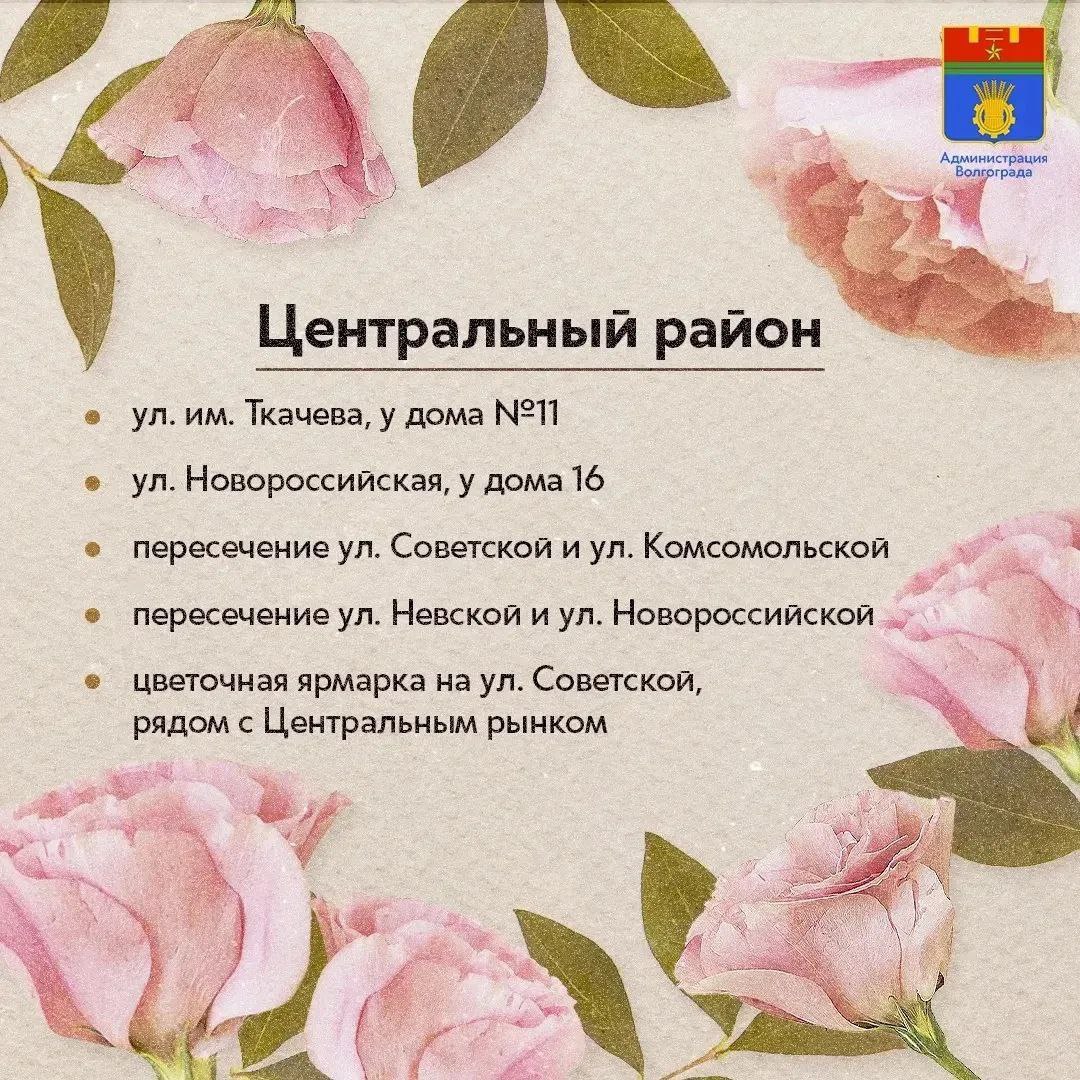 В преддверии Международного женского дня Волгоград преображается — во всех районах города открываются официальные точки по продаже цветов. Это не только привычные павильоны и рынки, но и специальные площадки, работающие по утвержденной схеме.