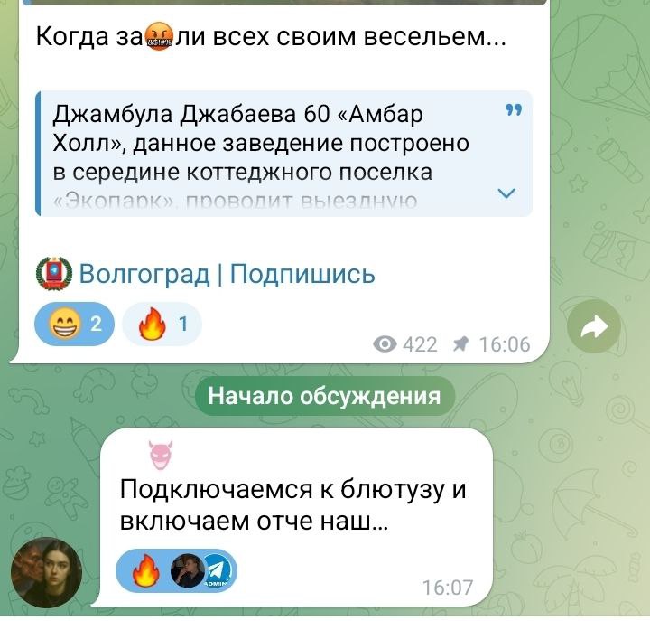 18.10 в 16:40 2 мин 0 56 # Волгоград Когда не знаете как выйти из ситуации — спросите наших подписчиков 18.10 в 16:40 2 мин 0 56 Когда не знаете как выйти из ситуации — спросите наших подписчиков Присоединяйтесь к нашему телеграм-каналу Волгограда Следим за данной ситуацией в нашем телеграм канале. Следим за ситуацией в нашем телеграм канале. Подписывайтесь на нас в Telegram Самое читаемое 24 часа В Волгограде задержали подозреваемую в убийстве охранника на складе бытовой техники 16:40 23.12 0 4 Новости Волгограда: администрация канала приглашает к сотрудничеству 23:40 23.12 0 3 Прорывное открытие в Волгоградском медицинском университете: новый препарат для борьбы с диабетом 12:40 23.12 0 1 Прогноз погоды на сегодня в Волгограде 08:10 23.12 0 1 Читайте также Прорывное открытие в Волгоградском медицинском университете: новый препарат для борьбы с диабетом 12:40 23.12 0 13 Новости Волгограда: администрация канала приглашает к сотрудничеству 23:40 20.12 0 23 Географический шок: молодежь не знает, где находится монумент «Родина-мать зовёт» 22:10 20.12 0 32 Волгоградские семьи вахтовиков встретили Новый год на празднике «Зимник» 17:10 19.12 0 29 37 миллионов рублей на ремонт труб под Привокзальной площадью за 65 дней 13:40 19.12 0 21 ВТБ установил новогоднюю елку с фирменным дизайном на Площади Павших Борцов 10:40 19.12 0 33 Все новости