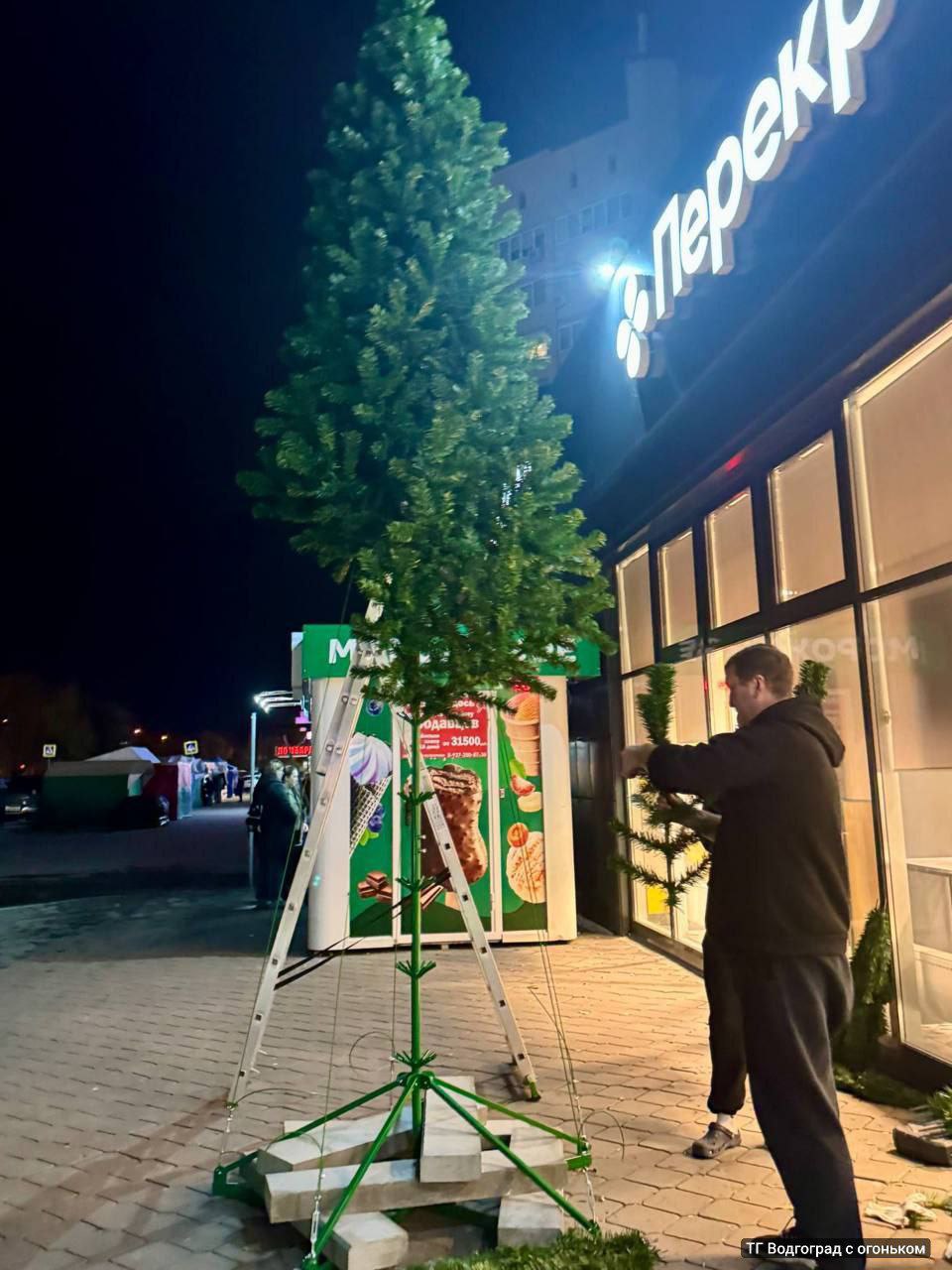 По сообщениям местных жителей, у магазина «Перекресток» в Волгограде уже начали устанавливать новогоднюю ёлку.