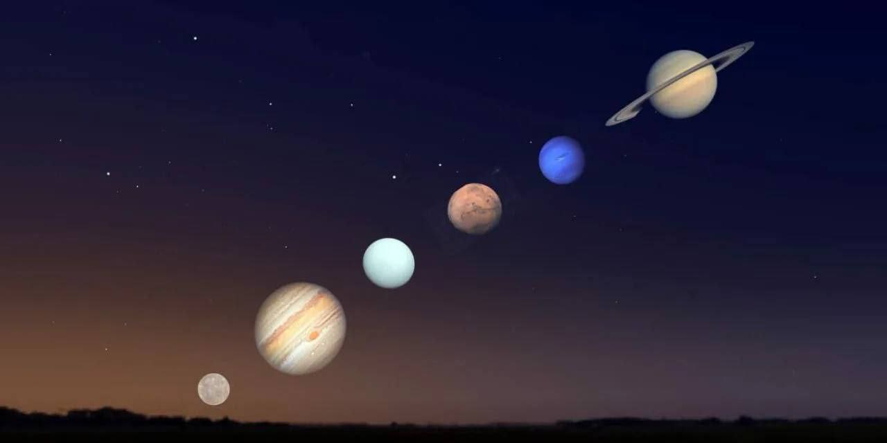 28 февраля в небе над регионом произойдет уникальное астрономическое явление: сразу шесть планет Солнечной системы — Меркурий, Венера, Юпитер, Сатурн, Уран и Нептун — выстроятся в одну линию. Понаблюдать за «шествием» можно будет сразу после заката. Примечательно, что четыре из шести планет будут видны даже без использования телескопа или бинокля.