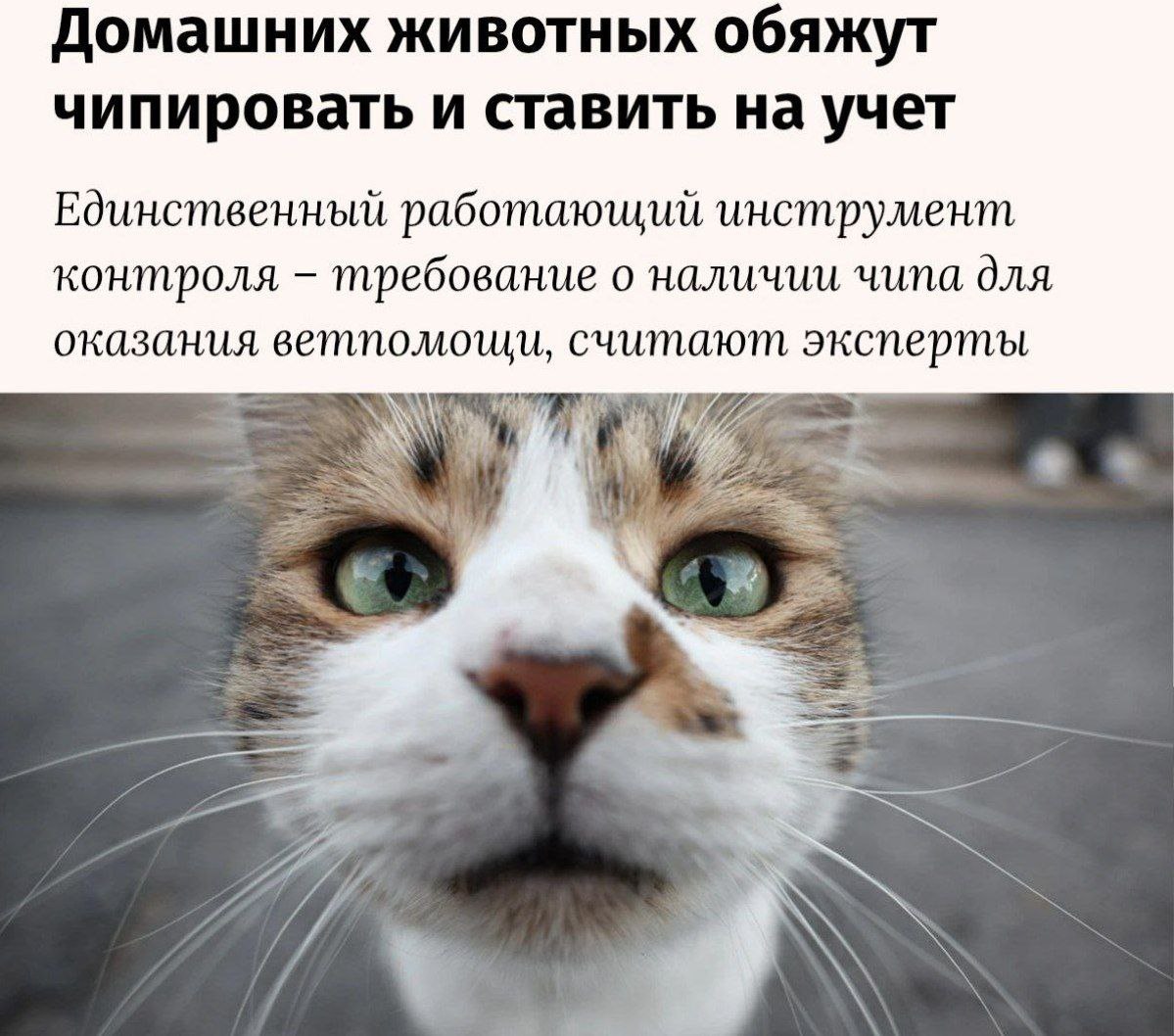 Вскоре каждого кота и собаку в стране придется официально «оформить». Согласно новому законопроекту, владельцы должны будут снабдить питомца чипом или биркой и подать данные в ветеринарную систему.