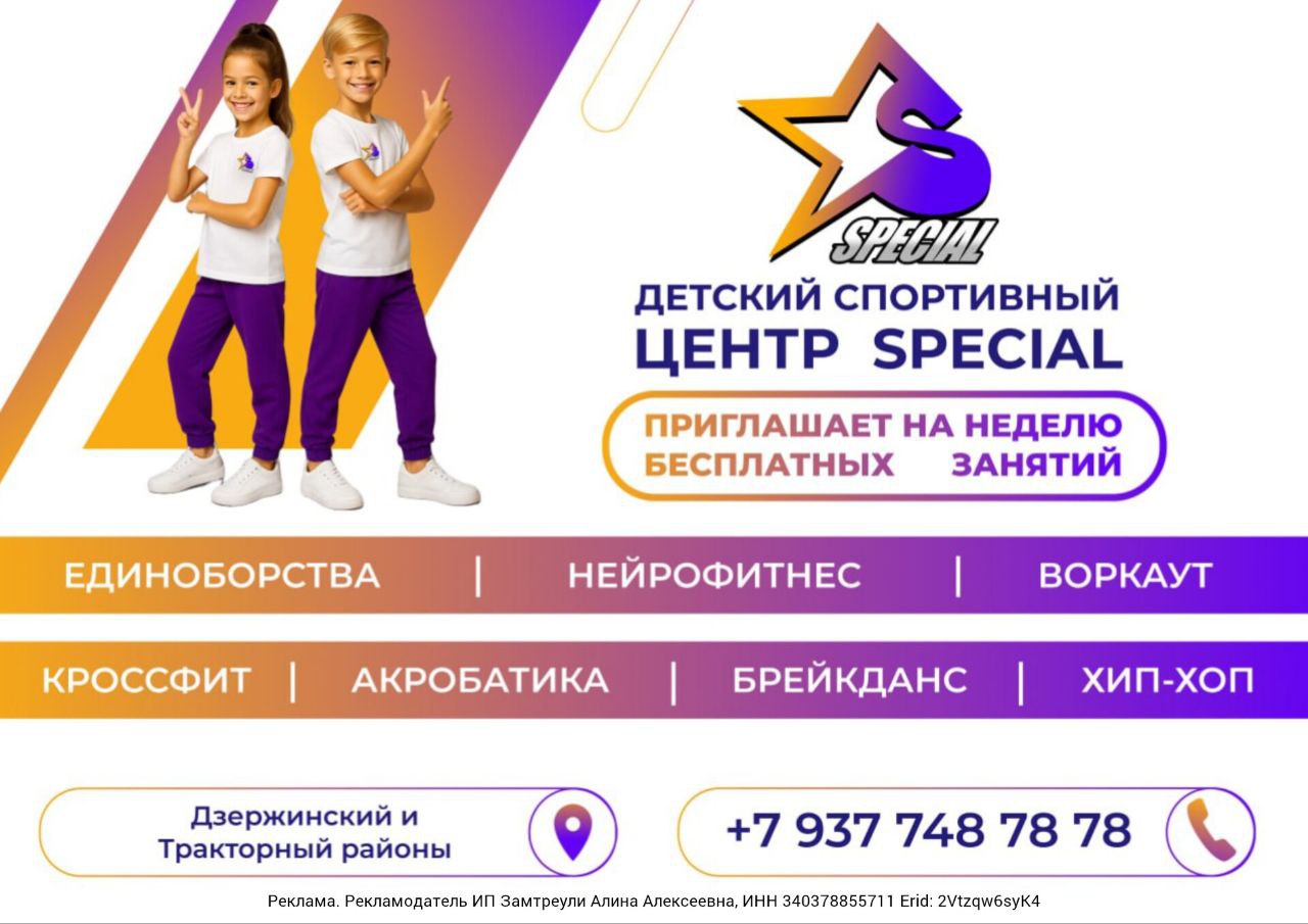 Физкультурно-спортивный центр Special объявляет о проведении недели бесплатных пробных занятий для детей и подростков.