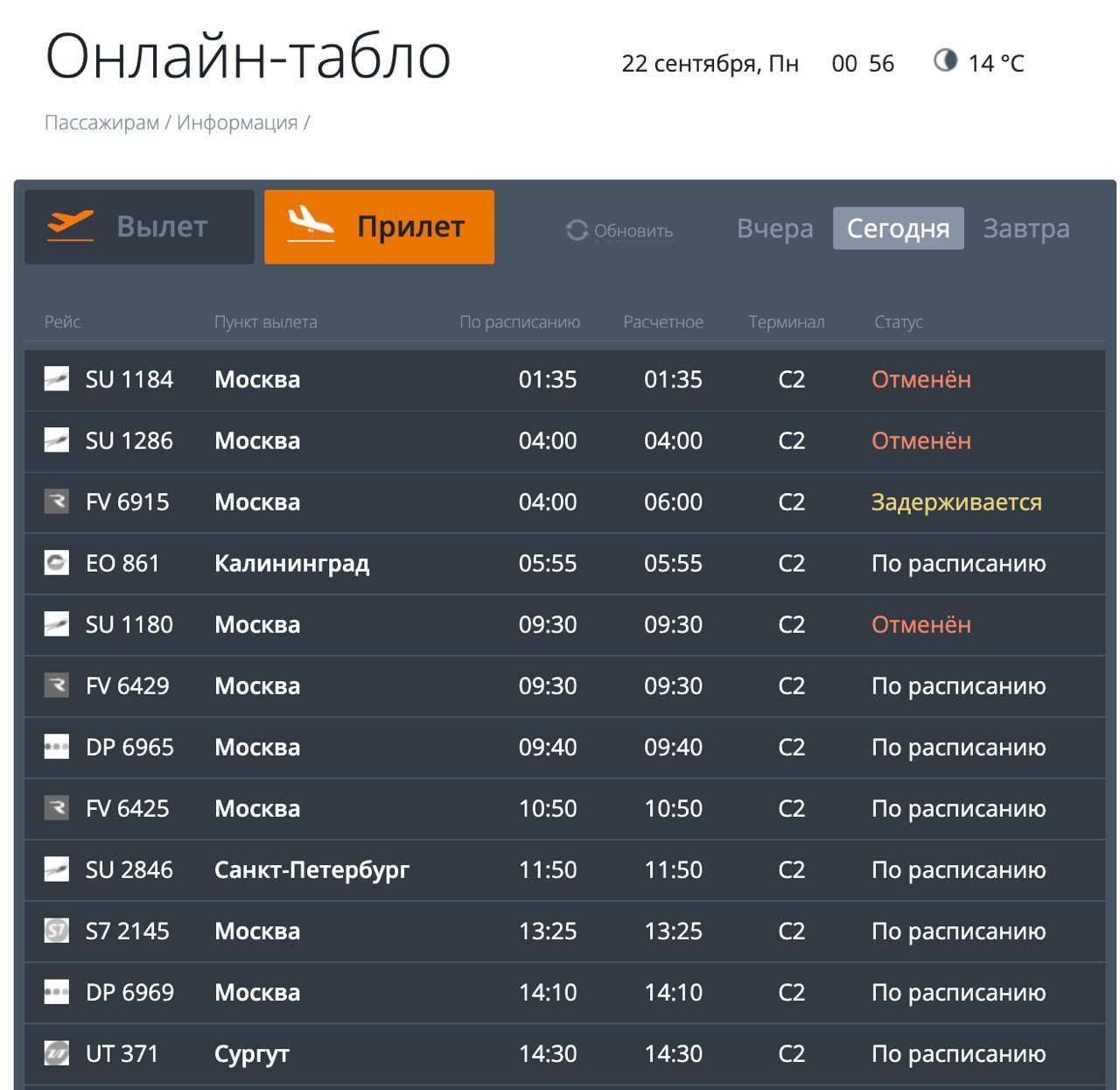 В аэропорту Волгограда произошли изменения в расписании: отменены 6 рейсов и 2 задерживаются