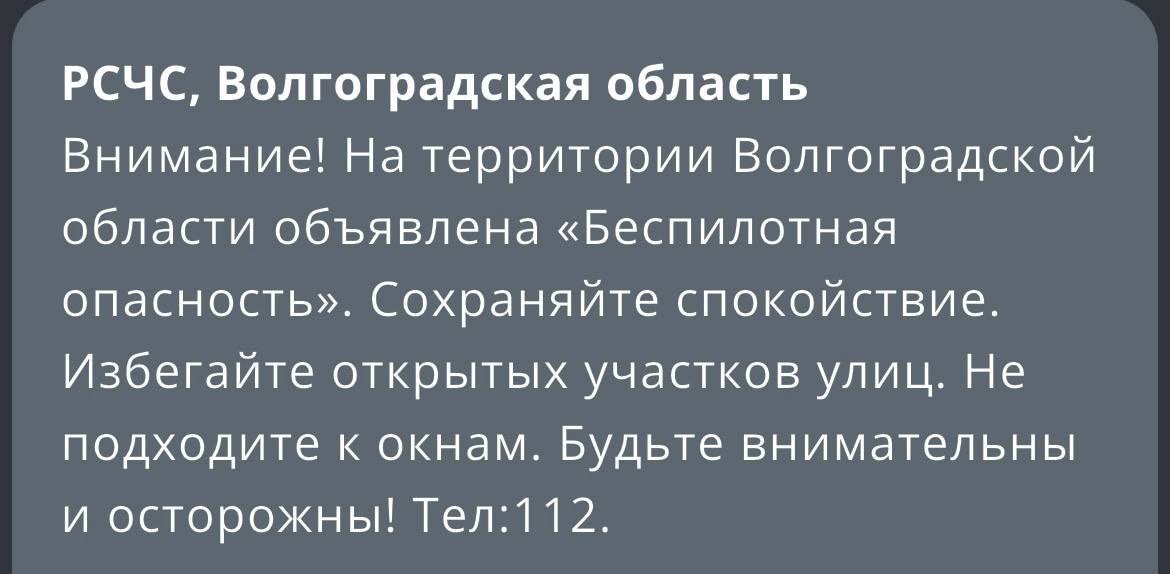В Волгоградской области объявлена беспилотная опасность