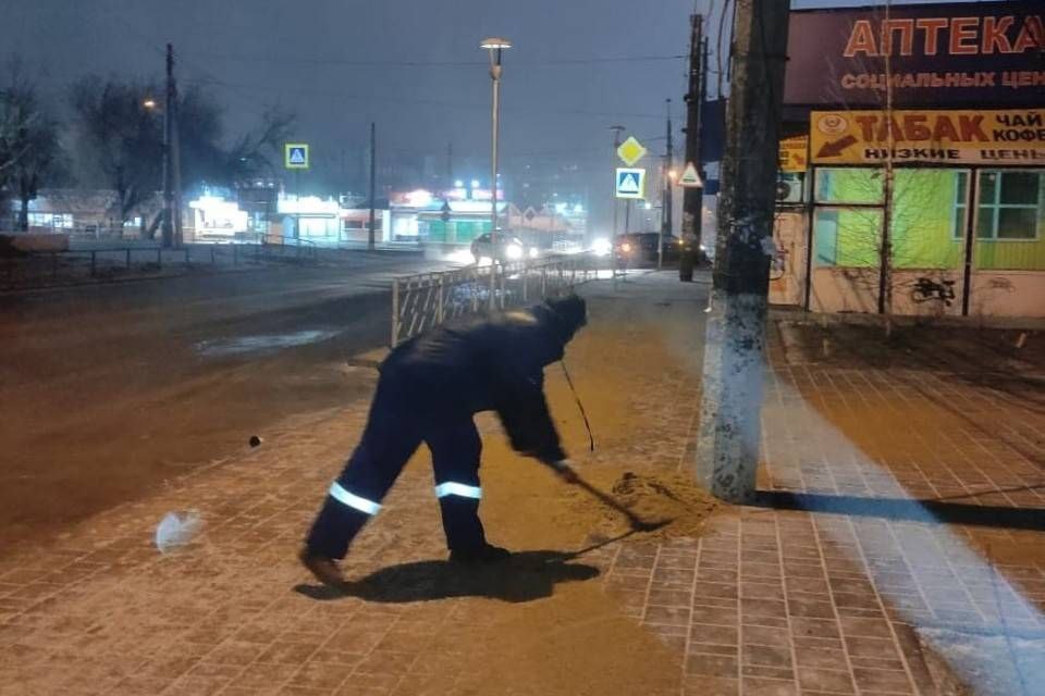 Волгоград обрабатывают от гололеда: городские службы работают на пешеходных зонах