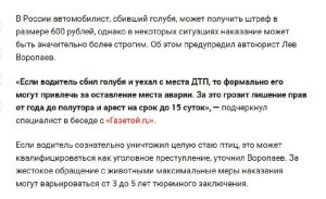 Водителям грозит до 5 лет тюрьмы за ДТП с голубями