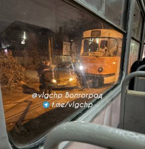 Столкновение трамвая с автомобилем произошло на улице Просвещения