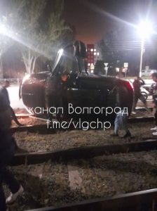 Автомобиль перевернулся после выезда на трамвайные пути в Волжском